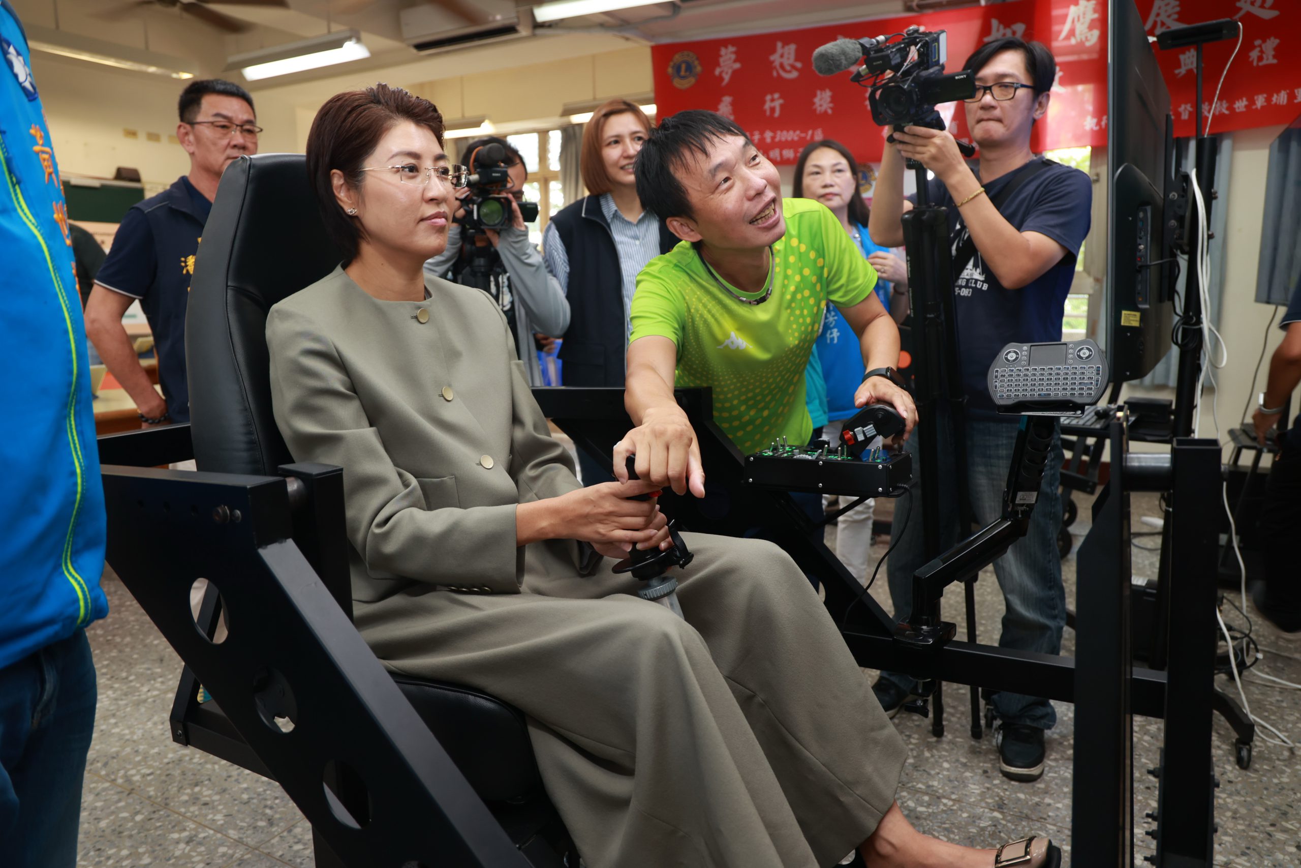 埔里國中校長陳清濱,爭取97萬餘元,在該校教室開設飛行模擬教室,讓喜愛飛行的學生透過模擬器學習,進而產生興趣,也為社會培育人才;許縣長不但答應協助埔里國中開設,還透過模擬設備,駕駛虛擬戰機從松山機場起飛,在北部天空巡禮。