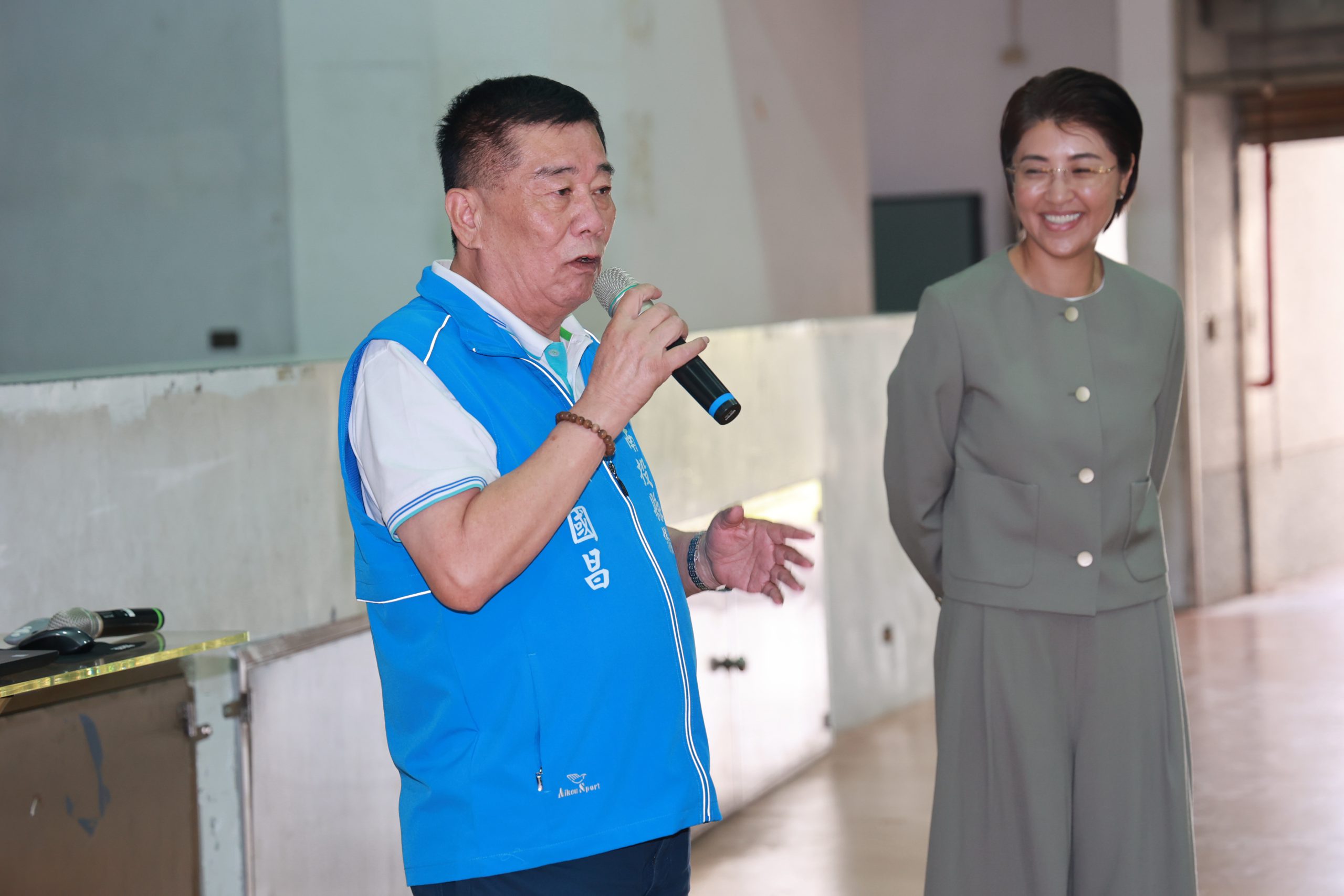 隨後,許縣長到大成國中,該校校長王仁穩爭取289餘萬元,在活動中心設置冷氣,改善悶熱問題,許縣長考量學校活動中心已有30年,使用量大,且社區也在借用,縣府支持改善學園設備,讓學生有更好學習環境。