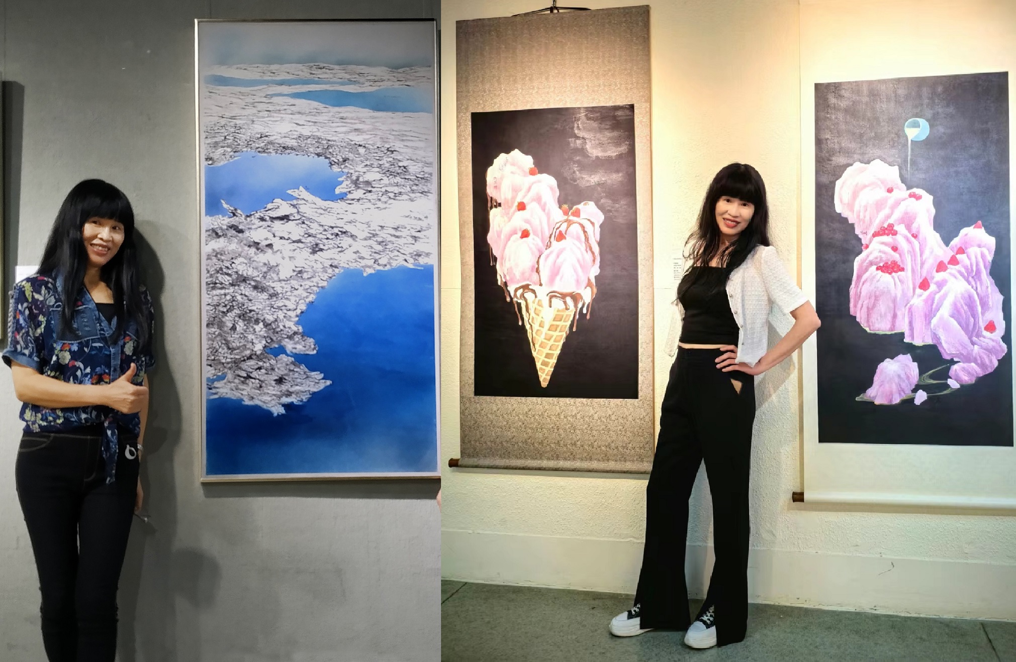 Yeh’s ink paintings are imbued with poetic undertones and a latent sense of unease, offering a rare critical space within contemporary art. In “The Taste of Mountains,” she masterfully employs traditional cun (texturing) strokes to render rugged peaks, yet unexpectedly places mountain-shaped ice cream inside a dragon-patterned porcelain bowl, creating a striking “temporal dissonance.” As Yeh explains, “Mountains symbolize endurance and the spiritual essence of nature, while ice cream represents the fleeting sweetness of contemporary consumer culture. Their gaze becomes a metaphor for the flow of memory and time.” This act of heterogeneous juxtaposition conveys a sense of “melting” cultural anxiety: as we pursue extreme sensory gratification, do our solid historical traditions dissolve like ice cream under the scorching sun?