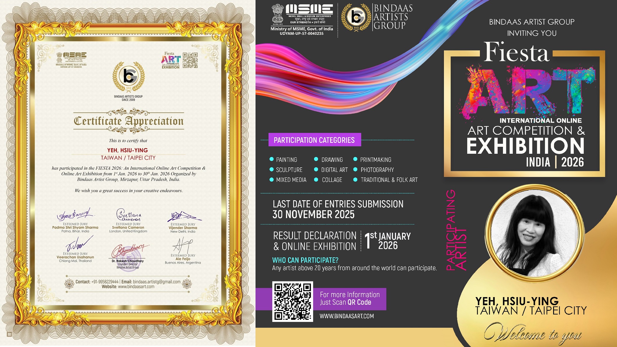 - 2026 「國際慶典藝術大賽暨線上展覽」印度