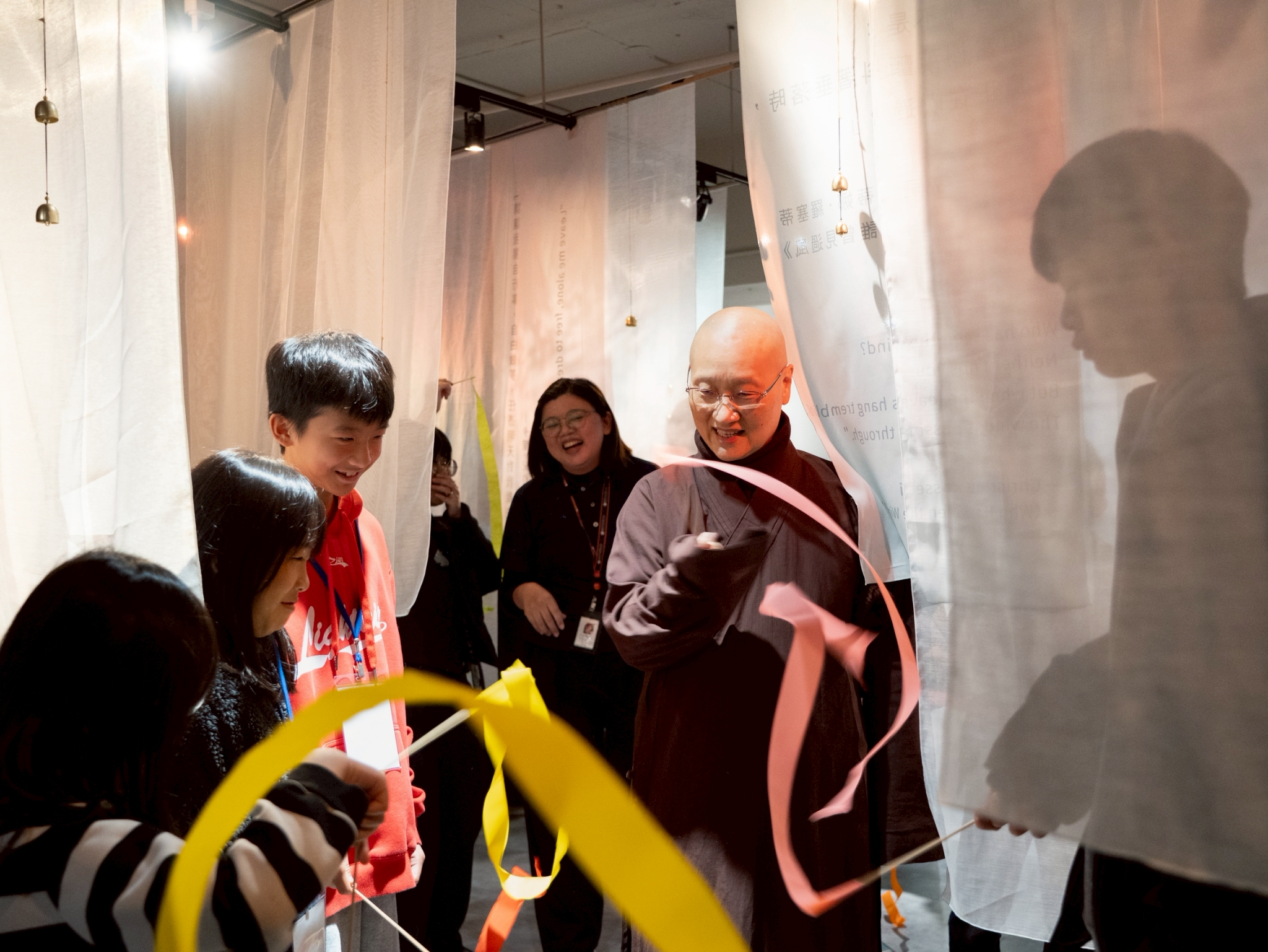 策展團隊巧妙運用跨齡設計策略,藉由互動機制,將「靈性」這個抽象概念,轉化為兒童能透過身體遊戲理解的「感覺」,及青少年能藉由象徵的提問進行「思考」。不要求理解、不給標準答案,觀眾在明亮寬敞的展場空間,依自己的節奏,與自然元素親密對談。