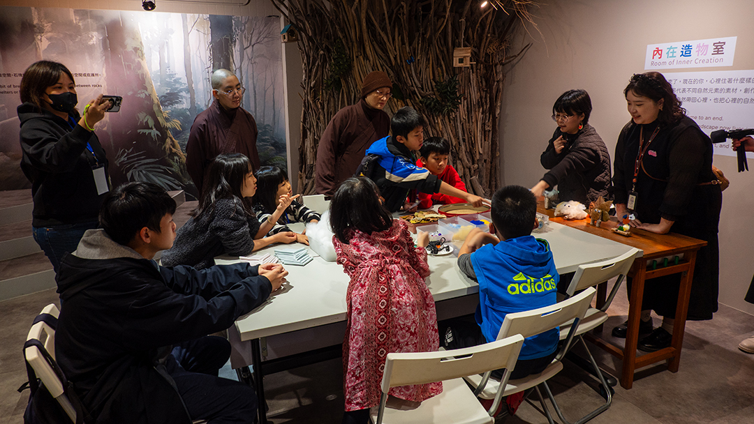 在展場尾聲的自由創作區,觀眾結合旅程中所見的色片、棉花、紗與土等自然元素,創作專屬的「內在自然小夥伴」。這份手作的溫暖成為展覽的延伸,館方期盼大家將這份靈性的種子帶回生活中,讓心靈的自然風景在展覽結束後持續綻放。